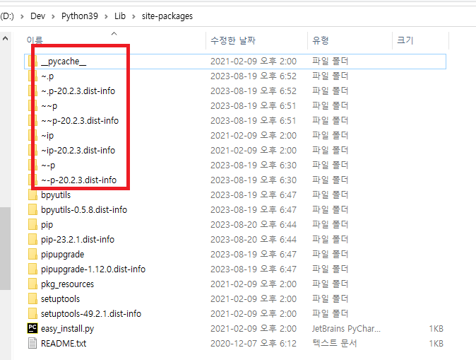 그래서 경고가 발생한 패키지의 디렉토리를 확인해보면, 이상한 디렉토리가 존재하는 것을 확인 할수 있습니다.