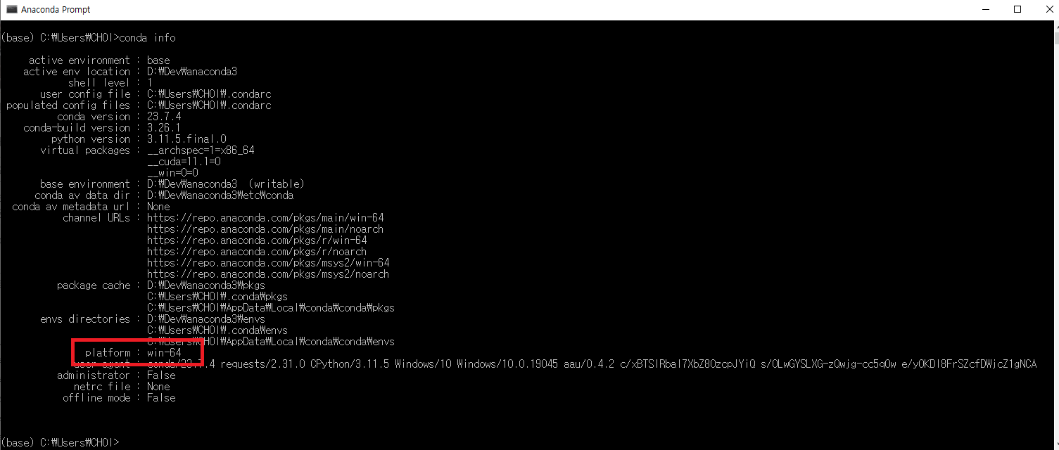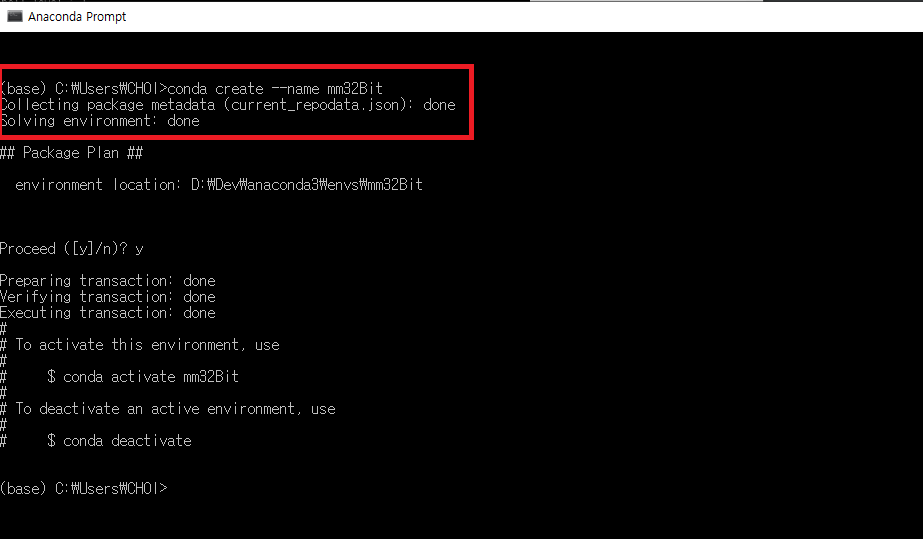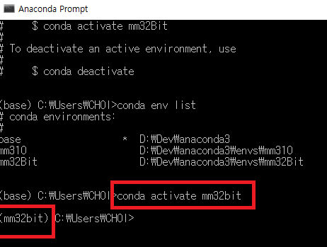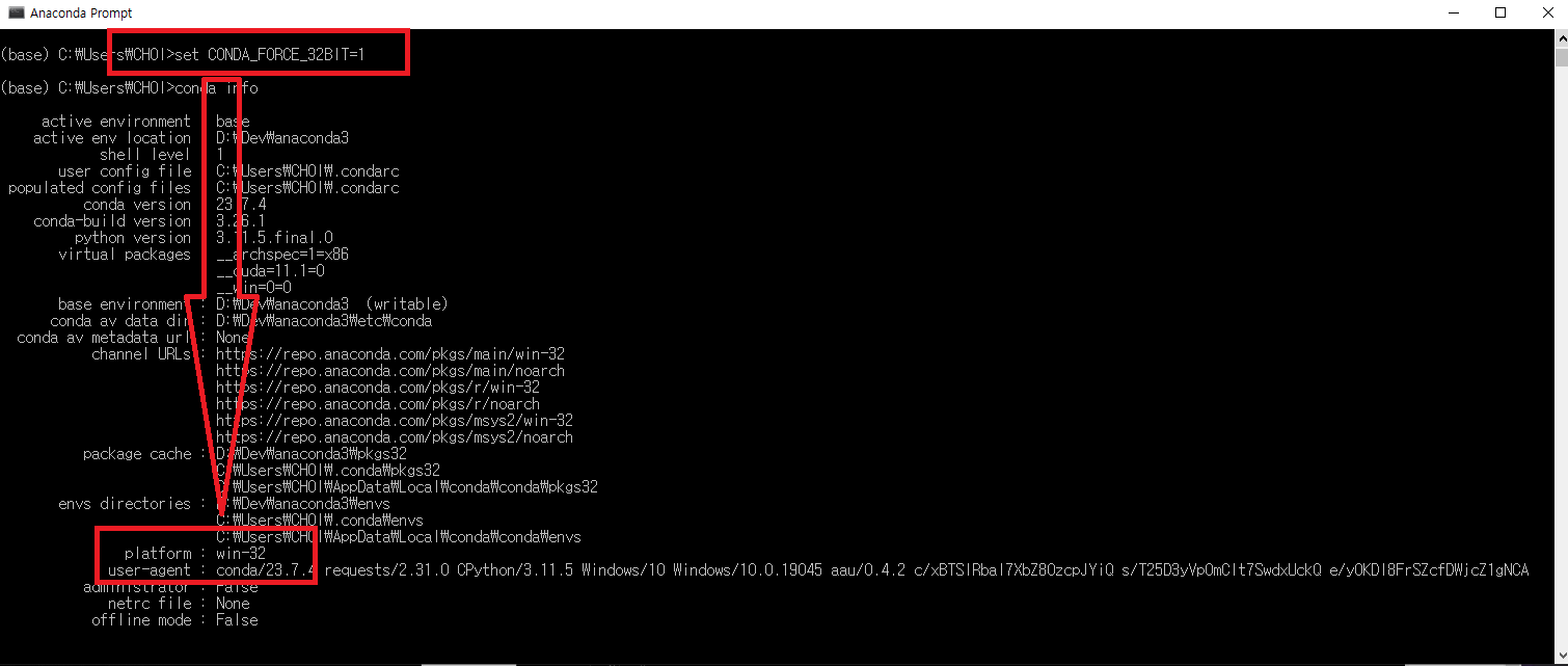 cf) 참고: 환경을 다시 64bit로 전환할때는 set CONDA_FORCE_32BIT=0 실행