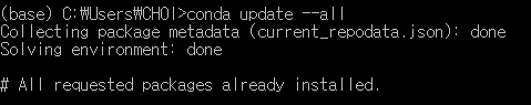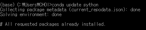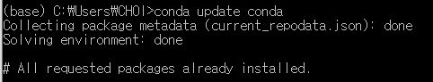 - 진행순서: conda -> python -> pip --> 패키지 업데이트