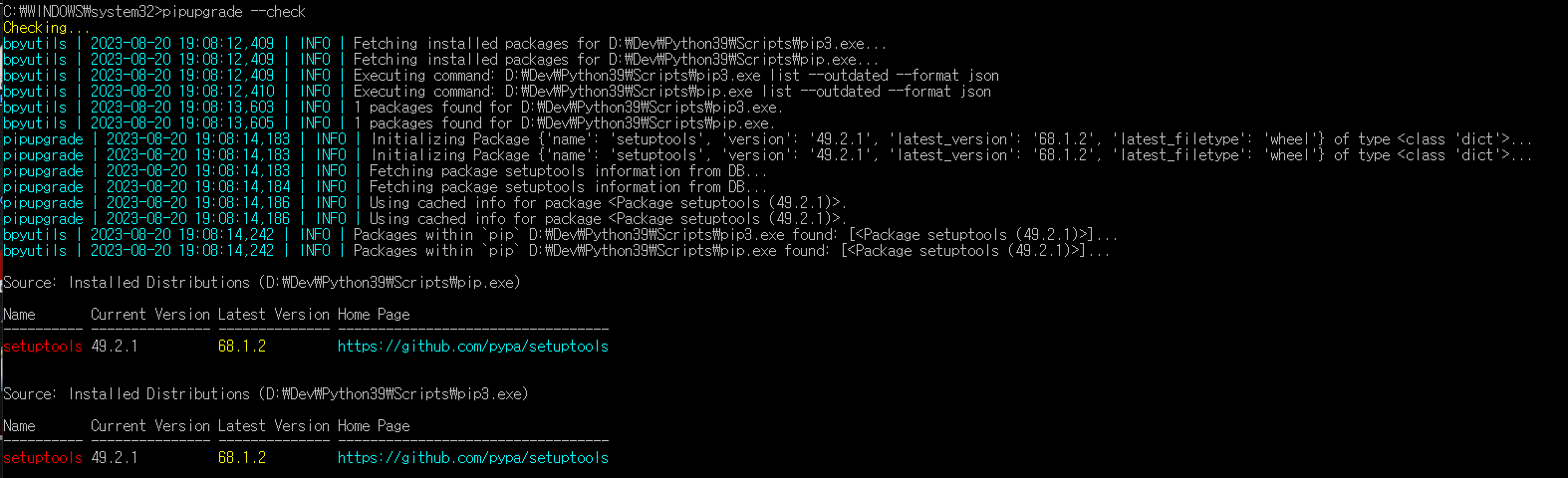 - 2023.08.20 :: [Python] 패키지 일괄 업데이트